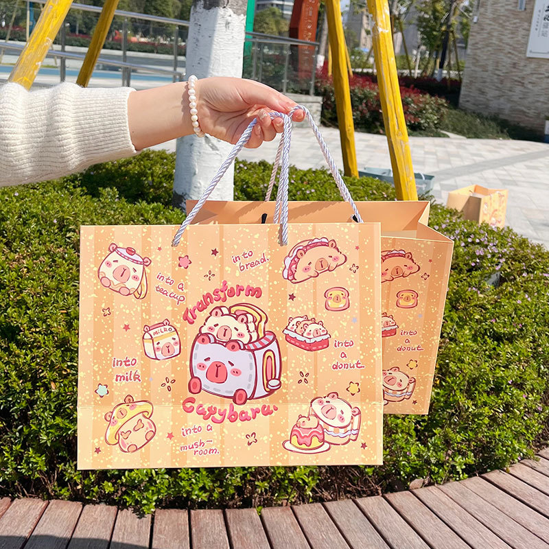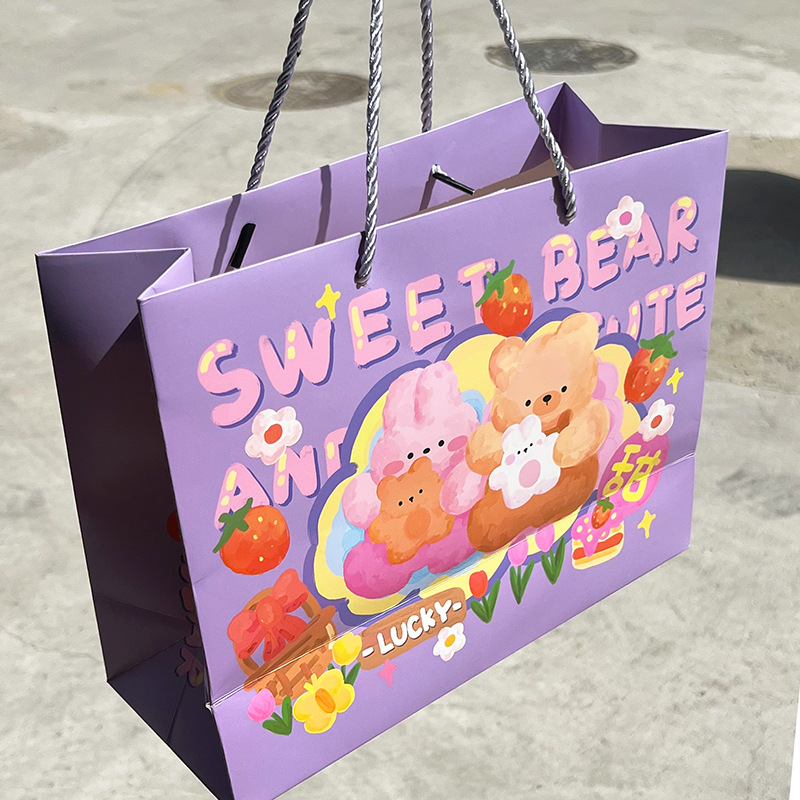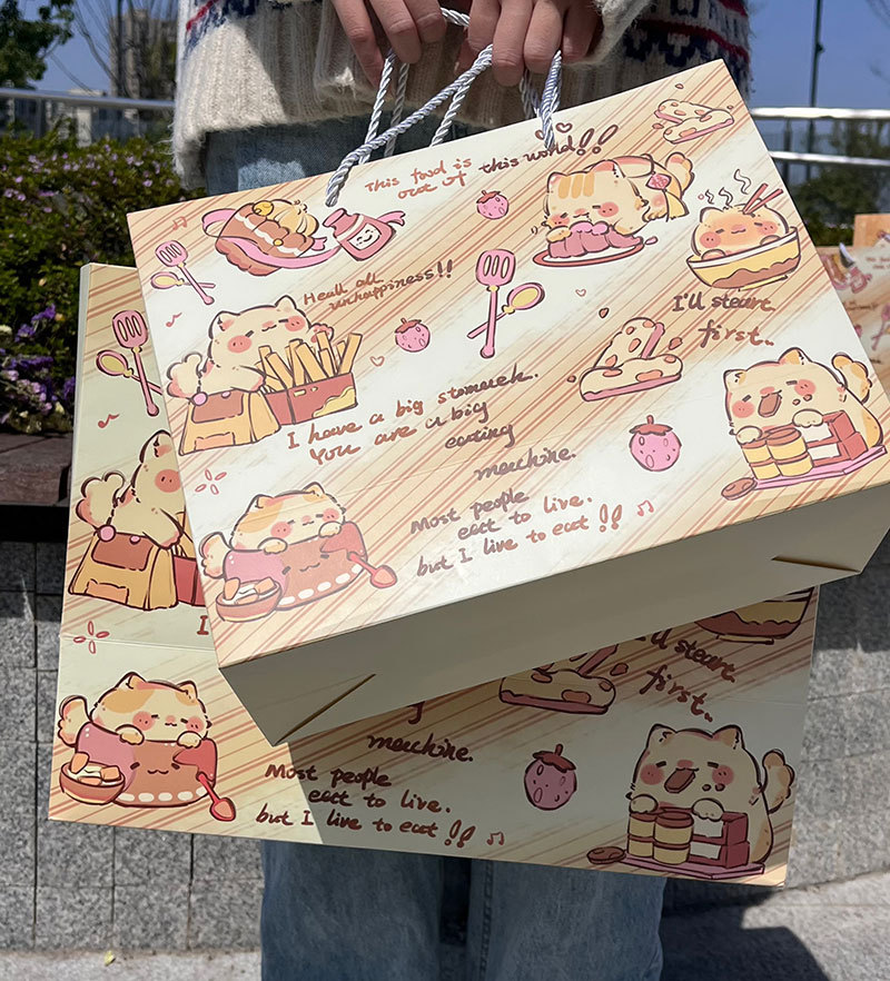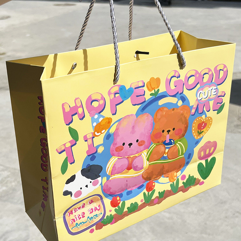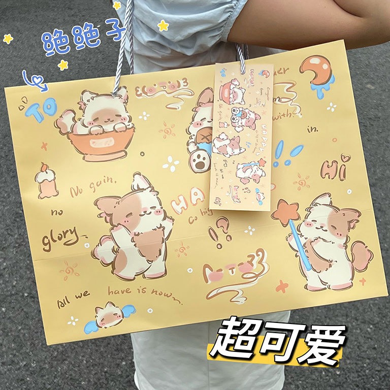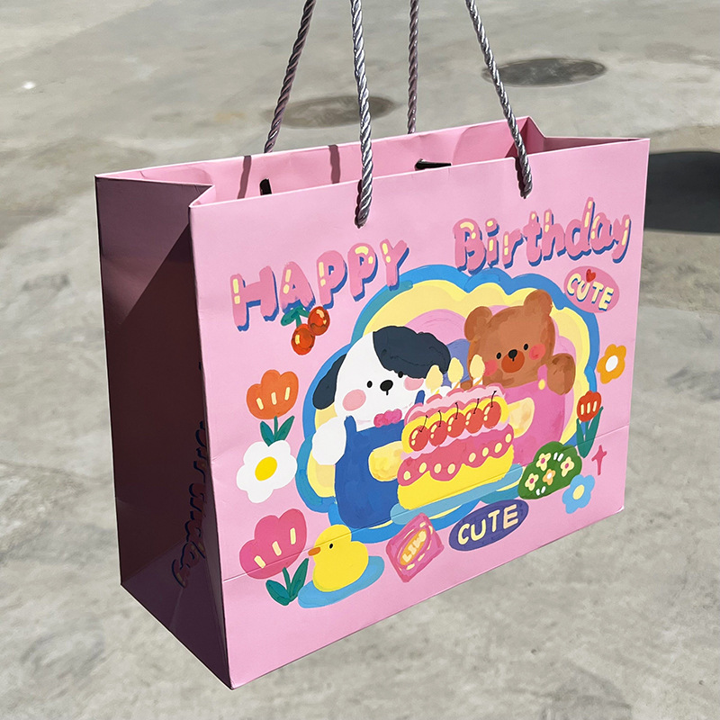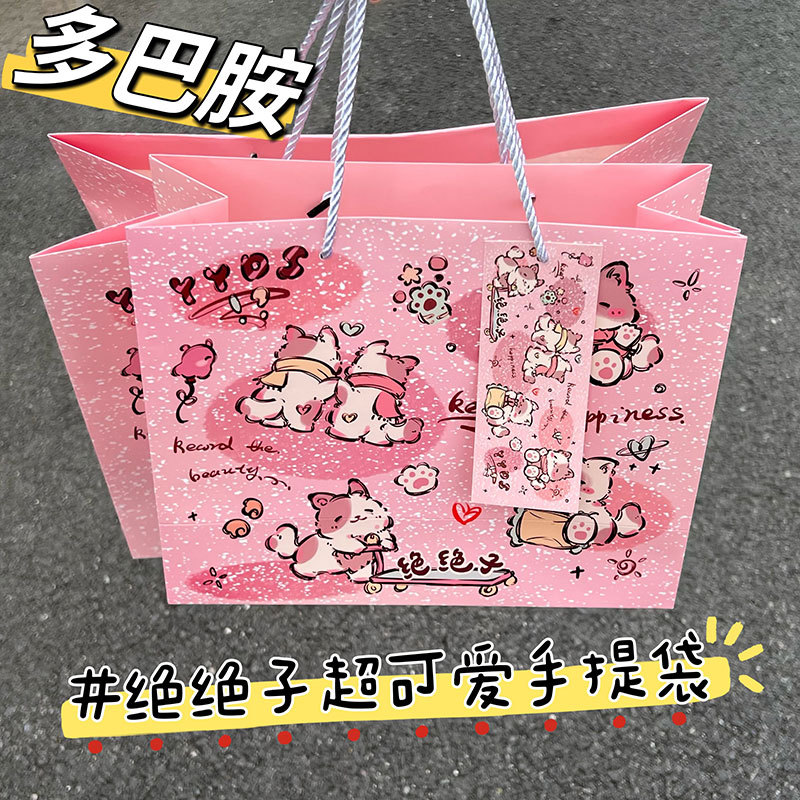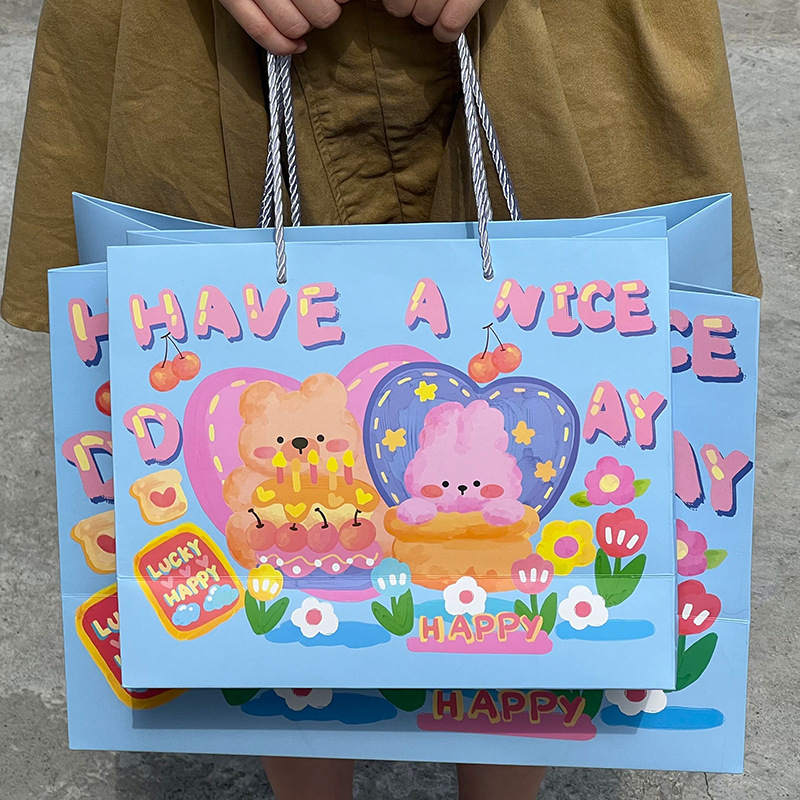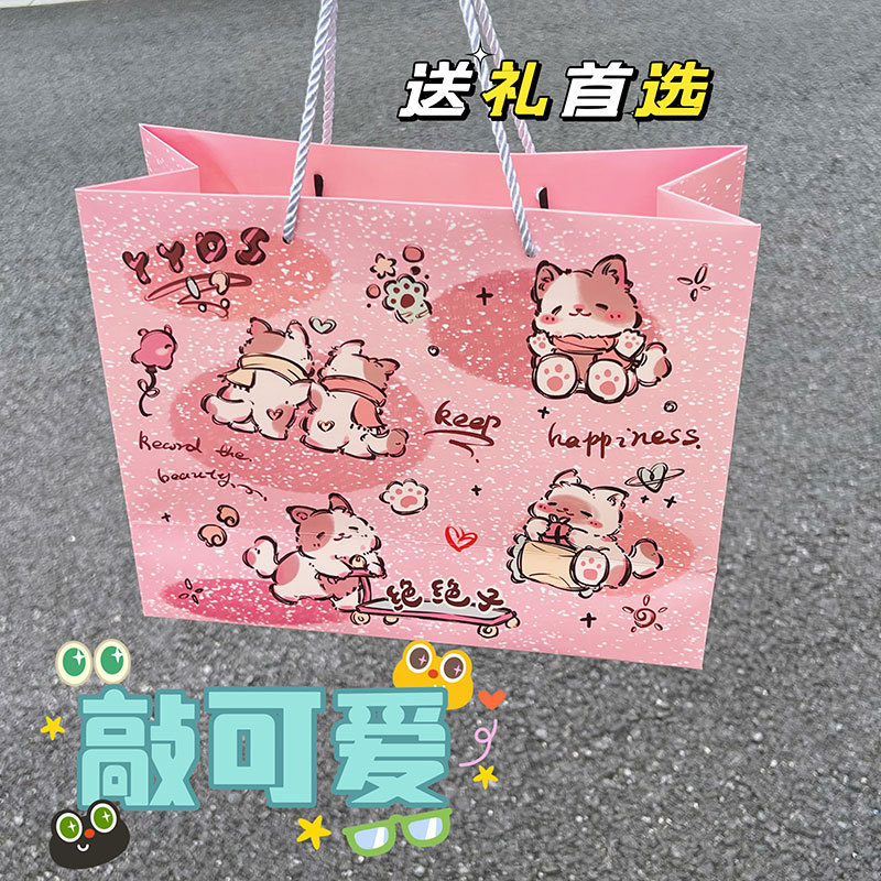 高顏值生日禮物可愛(ài)涂鴉禮品袋硬卡紙禮物袋手提袋加厚大容量紙袋